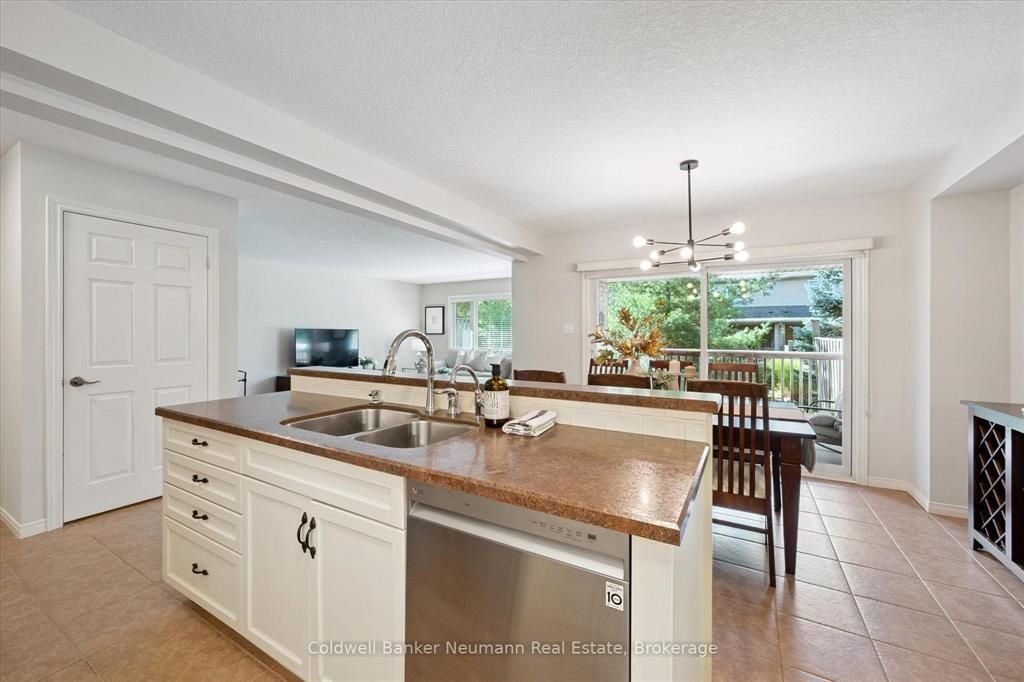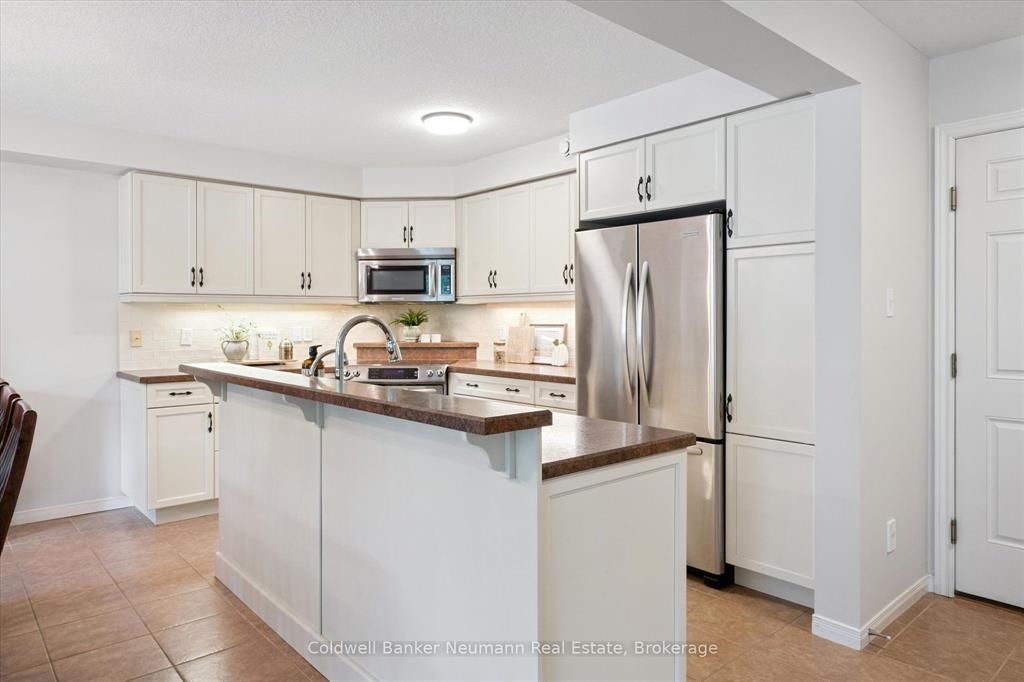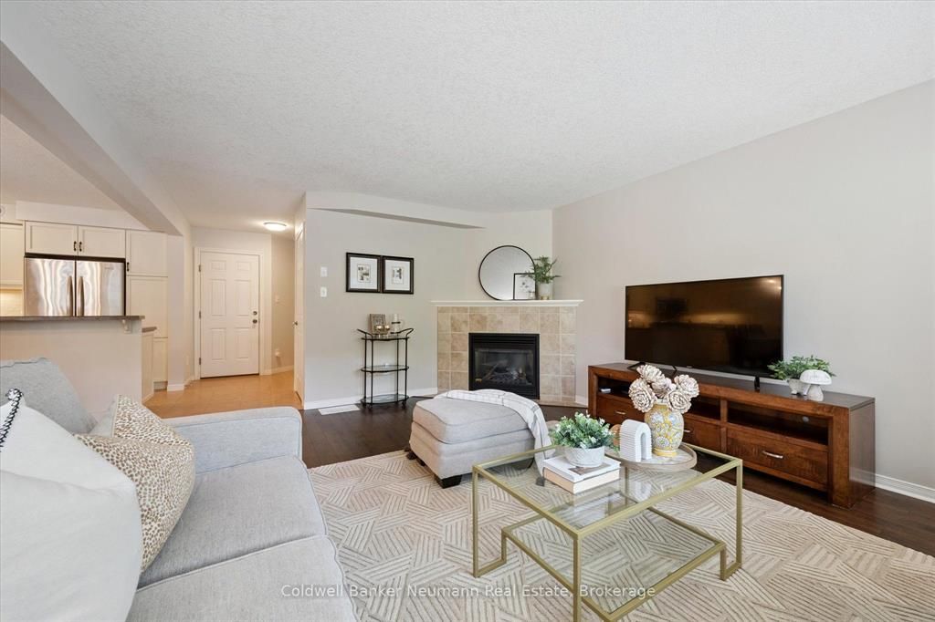 Step into the bright, open-concept main floor, where the spacious living and dining areas are bathed in natural light from oversized patio doors leading to your private covered patio. The living room features a cozy gas fireplace, creating a warm and inviting atmosphere. At the heart of the home is a lovely, functional kitchen designed for both everyday living and entertaining. It features plenty of cabinetry, ample counter space, and a large central island perfect for meal prep, casual dining, or gathering with friends and family.